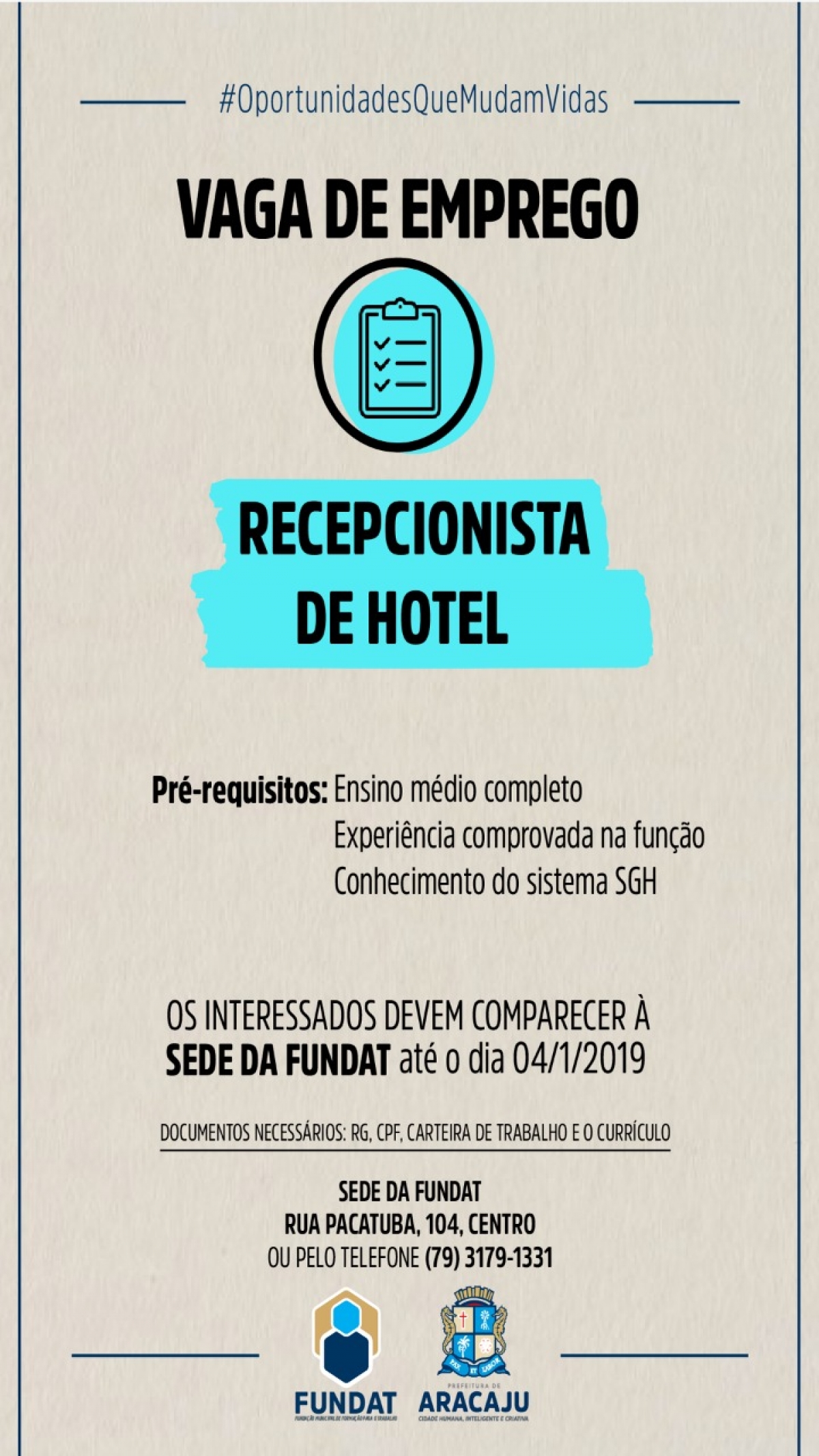 Fundat Aracaju Esta Com Vaga De Emprego Para Recepcionista