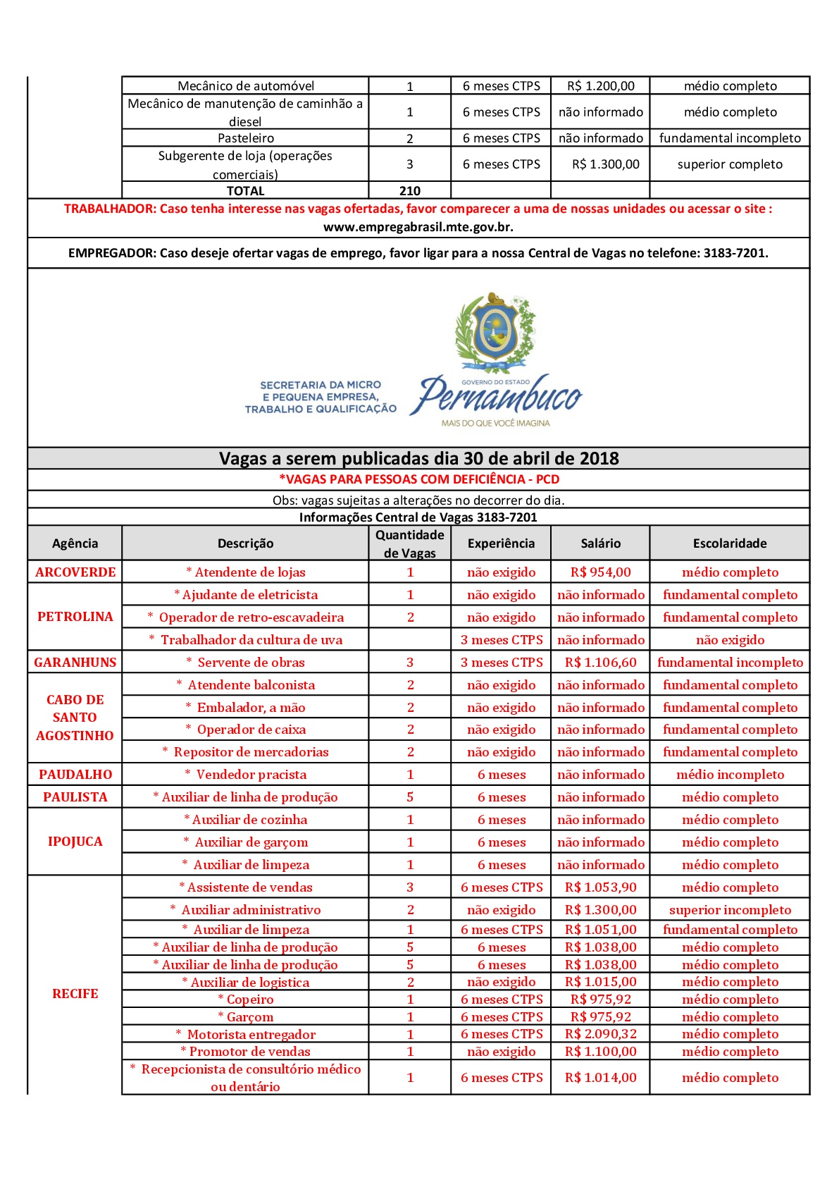 Agencia Do Trabalho Do Governo Do Estado Quadro De Vagas