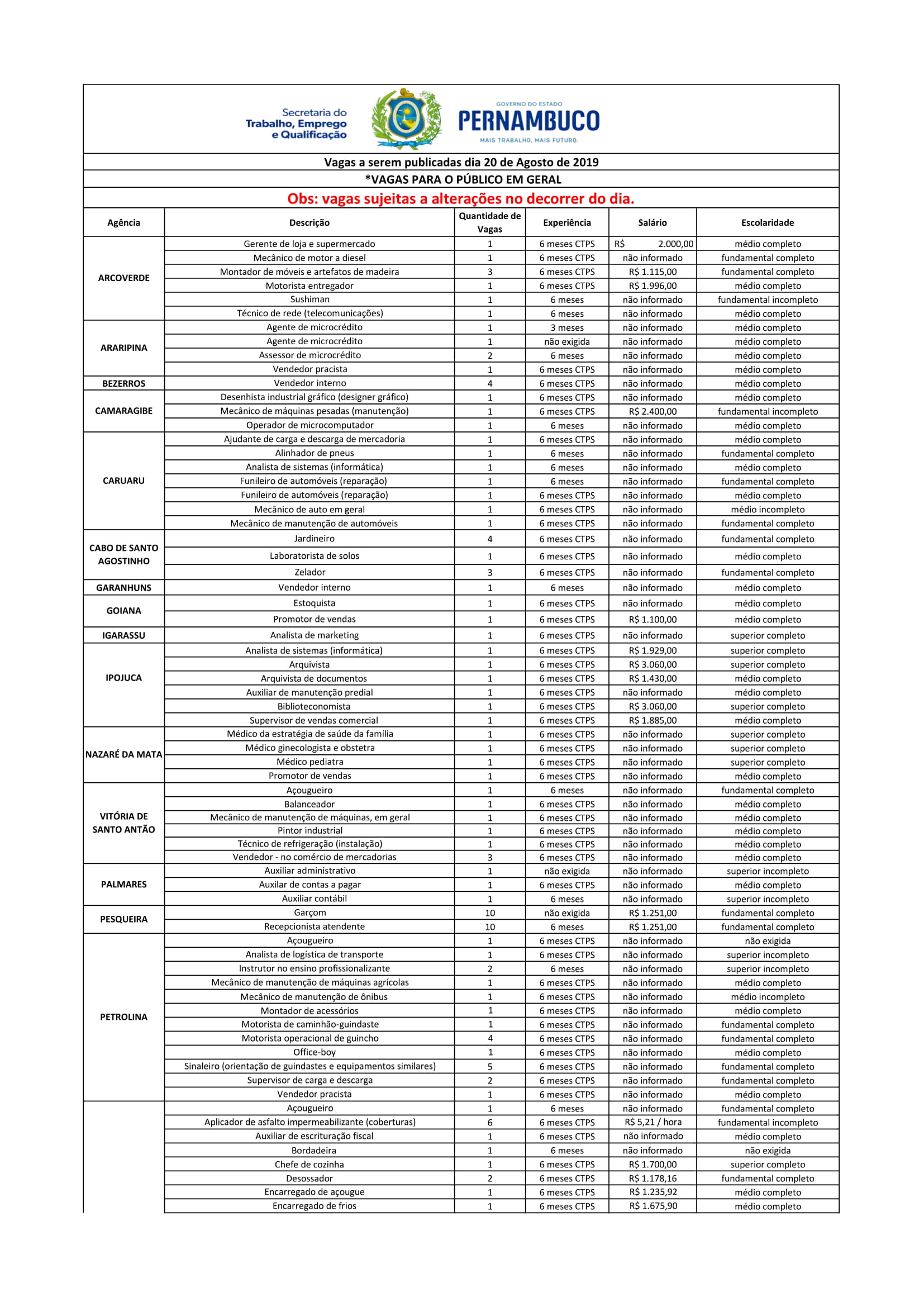 Agencia Do Trabalho Divulga Vagas De Emprego Em Pernambuco