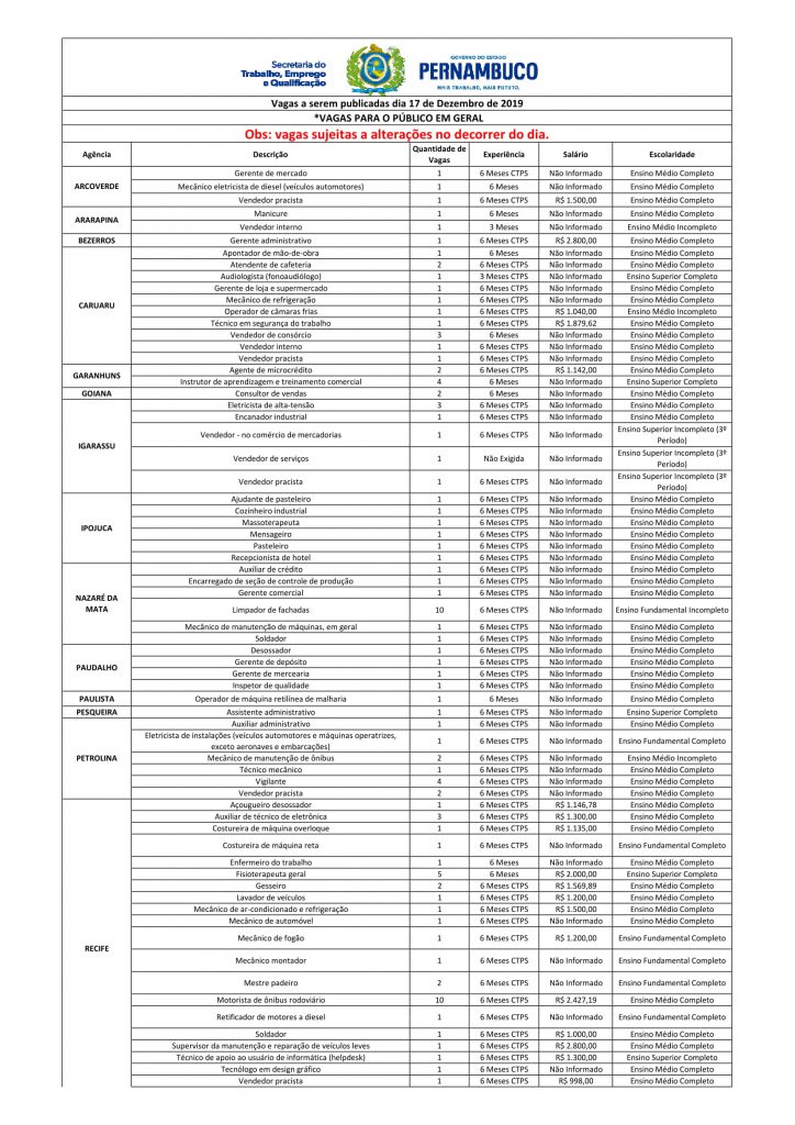 Recife Garanhuns E Sao Lourenco Oferecem Vagas De Emprego