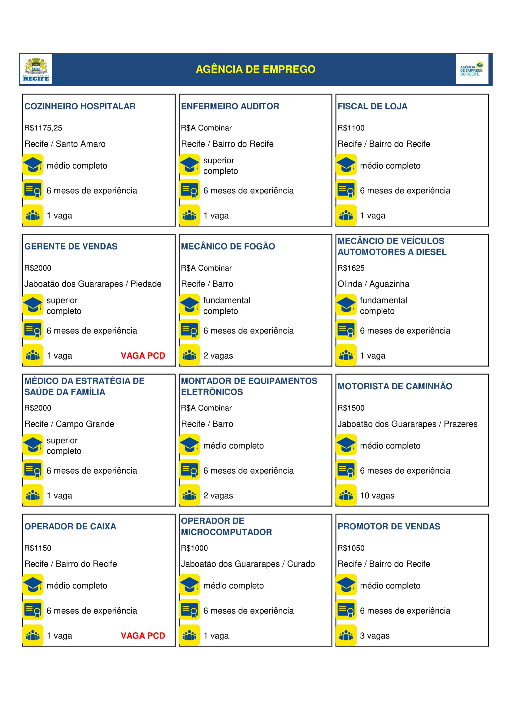 Agencia Do Trabalho Do Recife Quadro De Vagas Desta Sexta