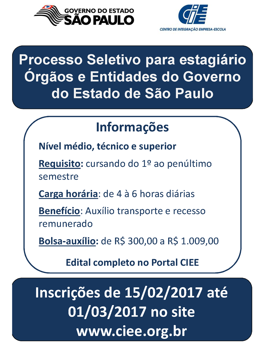 Inscricoes Abertas Para Estagio No Governo Do Estado Ciee