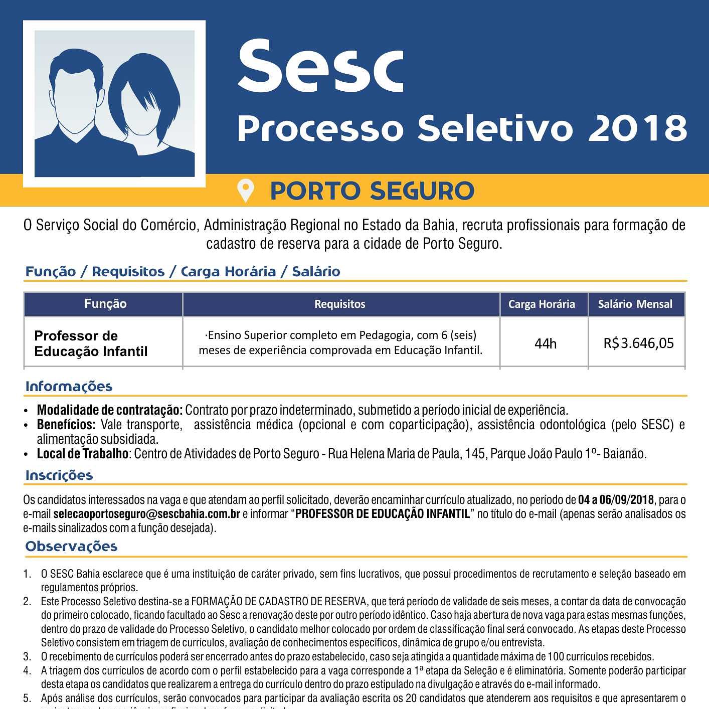 Sesc Bahia On Twitter Vaga Em Porto Seguro Professor De