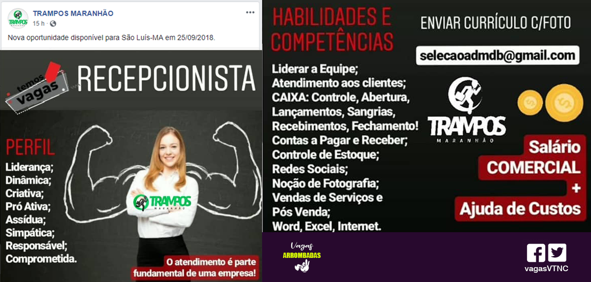Twitter पर Vagas Arrombadas Vaga Recepcionista