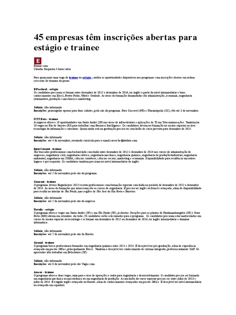 45 Empresas Tem Inscricoes Abertas Para Estagio E Trainee