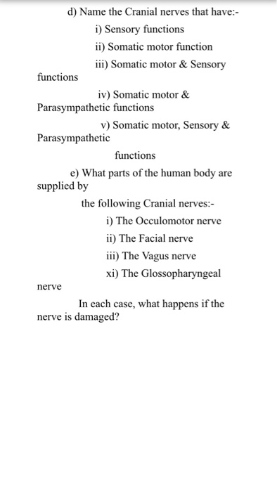 Solved D Name The Cranial Nerves That Have I Sensory F