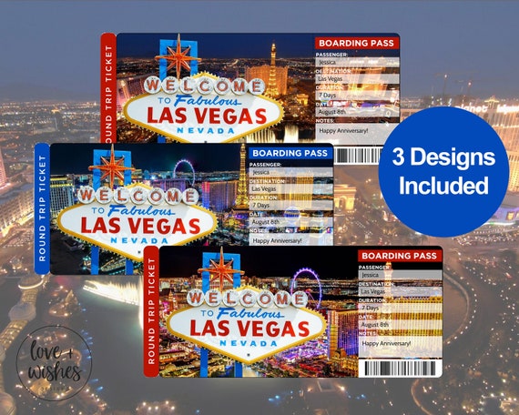 Las Vegas Trip Ticket Las Vegas Ticket Editable Ticket Template Surprise Ticket Vegas Vacation Tickets Boarding Pass Printable Ticket
